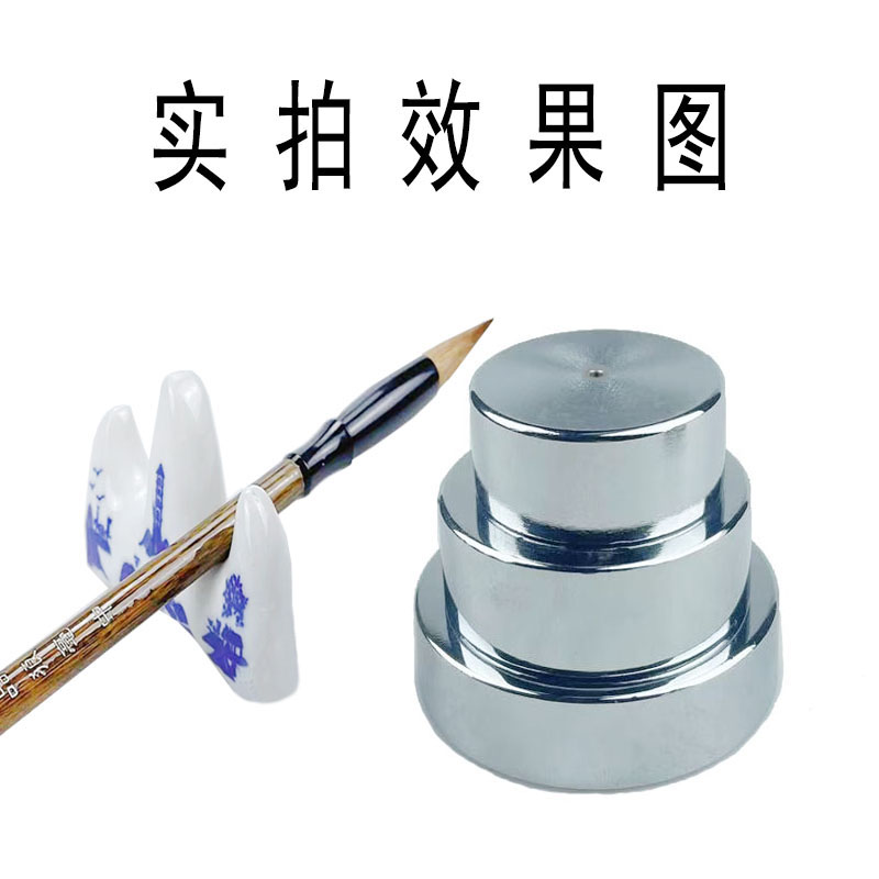 镇纸镇尺书法实心镀铬钢毛笔压书法字国画办公学生多功能圆形镇纸