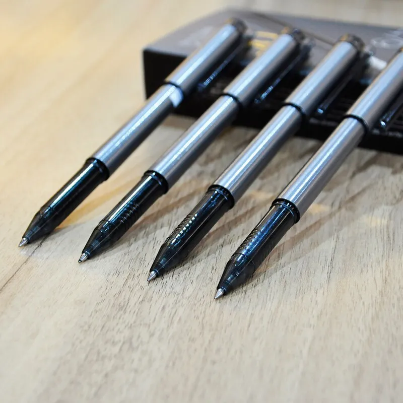 得力直液式走珠笔速干大容量直液笔0.5黑色中性笔学生用速干刷题笔水性笔直液笔圆珠笔商务办公简约风笔杆
