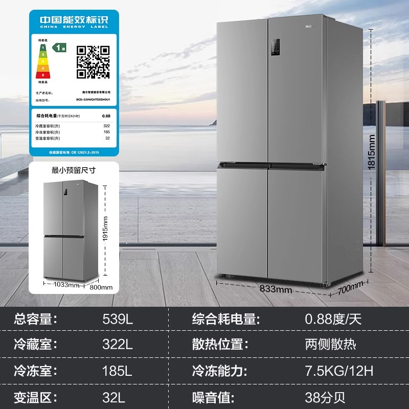 【李佳琦直播间美妆节】海尔539L双开四门一级能效电冰箱