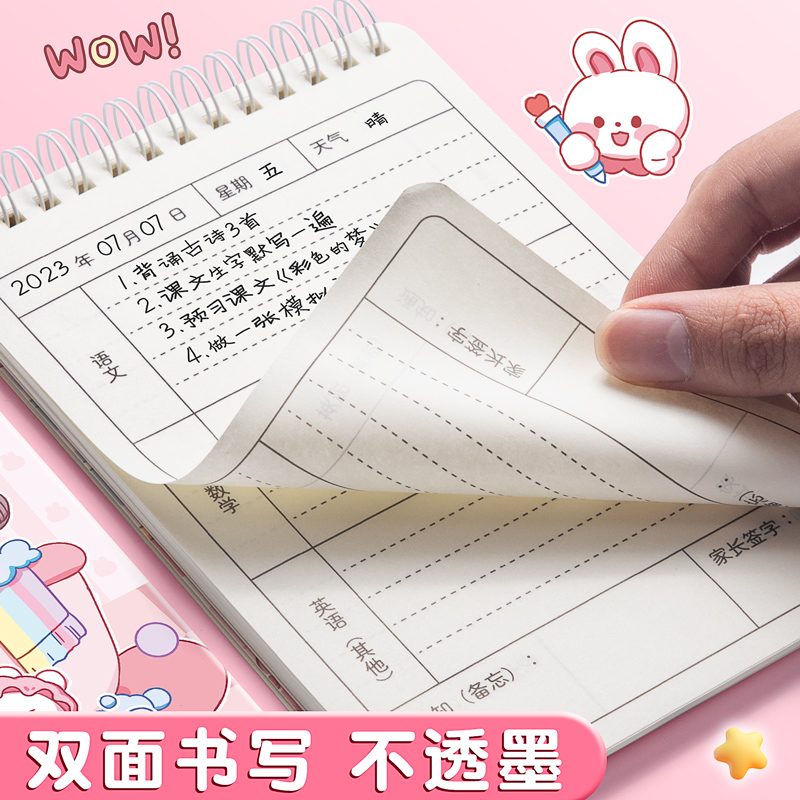 家庭作业登记本小学生记作业小本子笔记本可爱卡通抄写登记课堂作业本学生记录本上翻线圈本家校联系本一年级