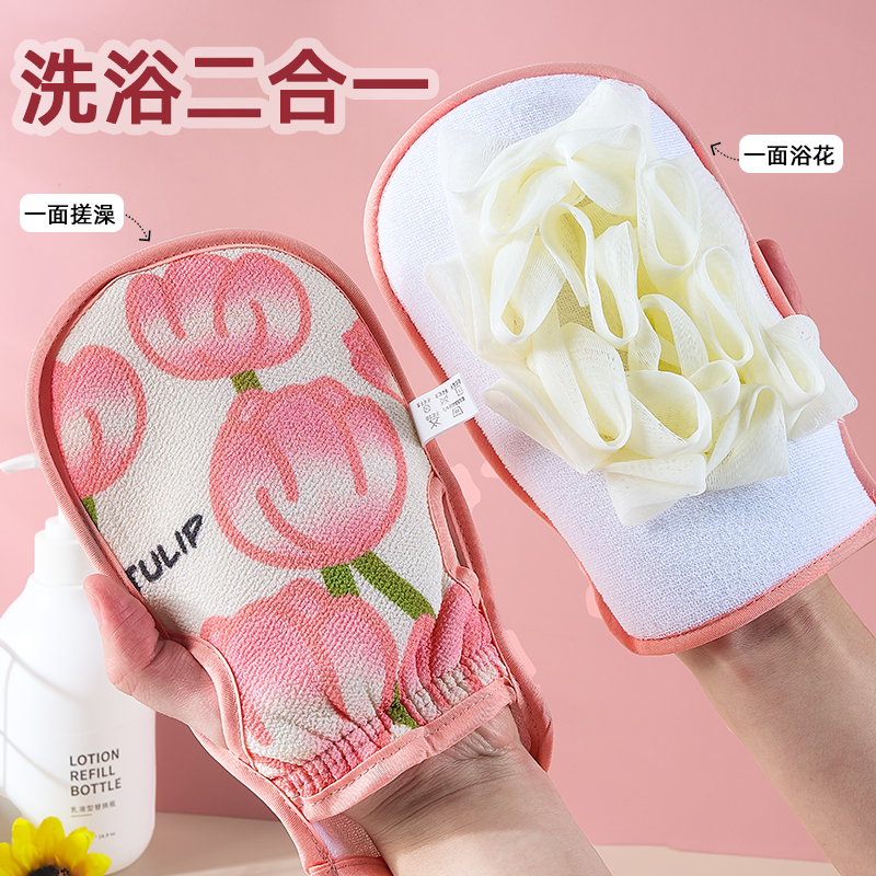 欢好花搓澡巾搓泥手套女士专用搓后背双面不伤肤下灰家用洗澡神器