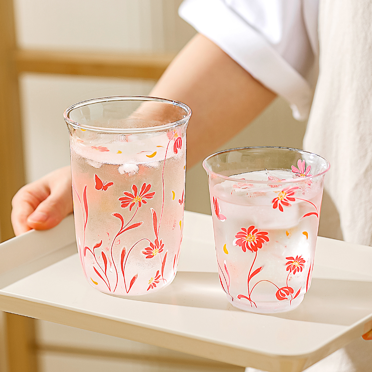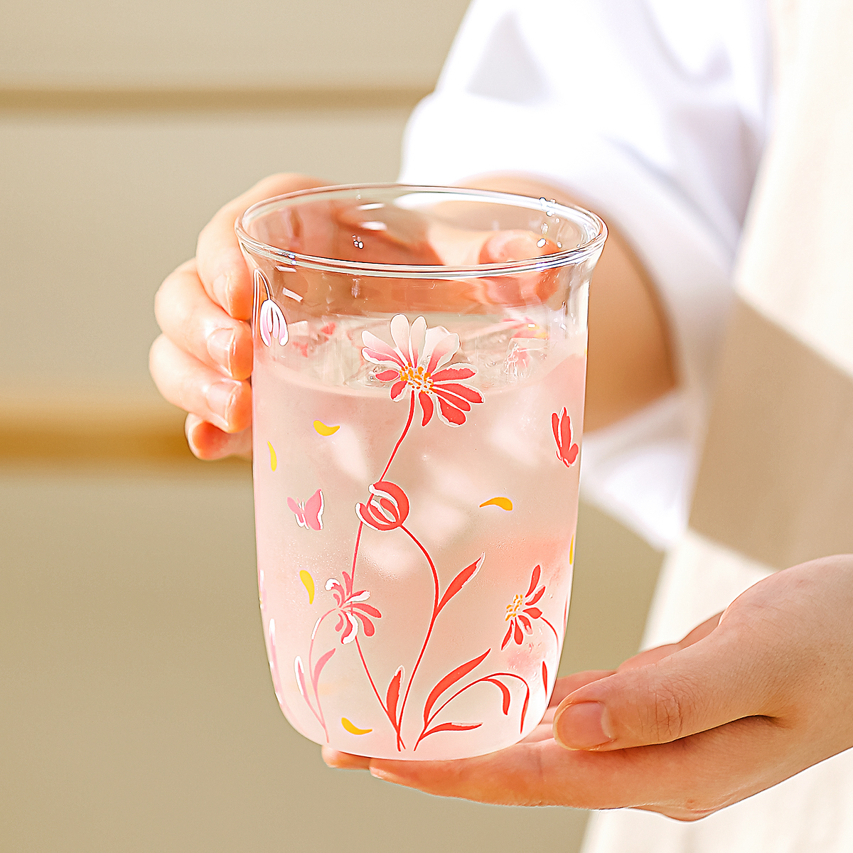 川岛屋冷热变色玻璃杯2025新款女高颜值果汁杯特别好看的喝水杯子