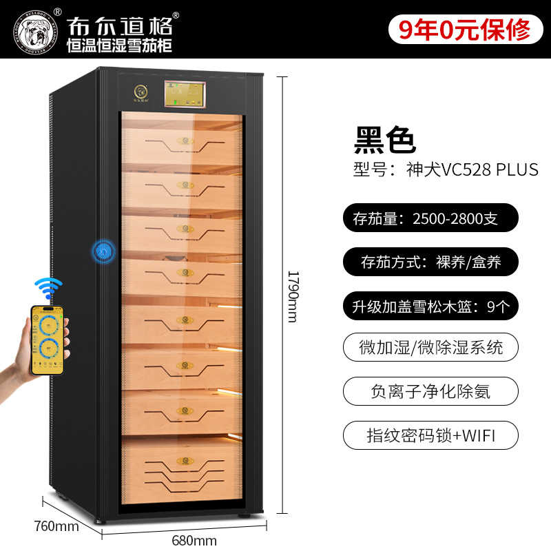 布尔道格VC528雪茄柜恒温恒湿裸养雪茄烟柜保湿柜雪松木智能除氨