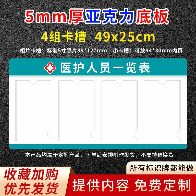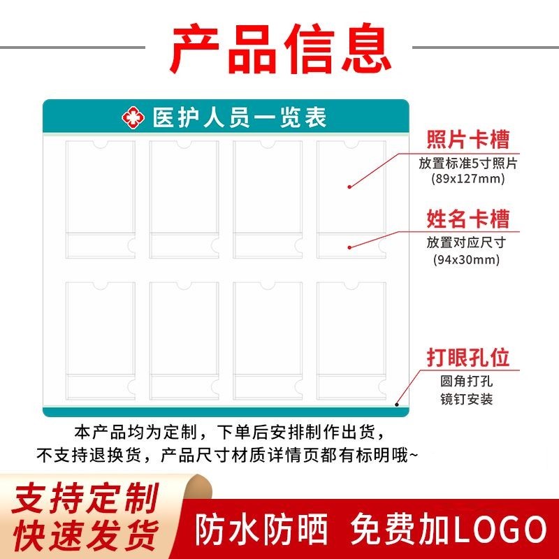 口腔诊所医院科室医务人员一览表形象照片上墙工作岗位值班医生护士医护信息门诊机构公示栏展示牌雪弗亚克力