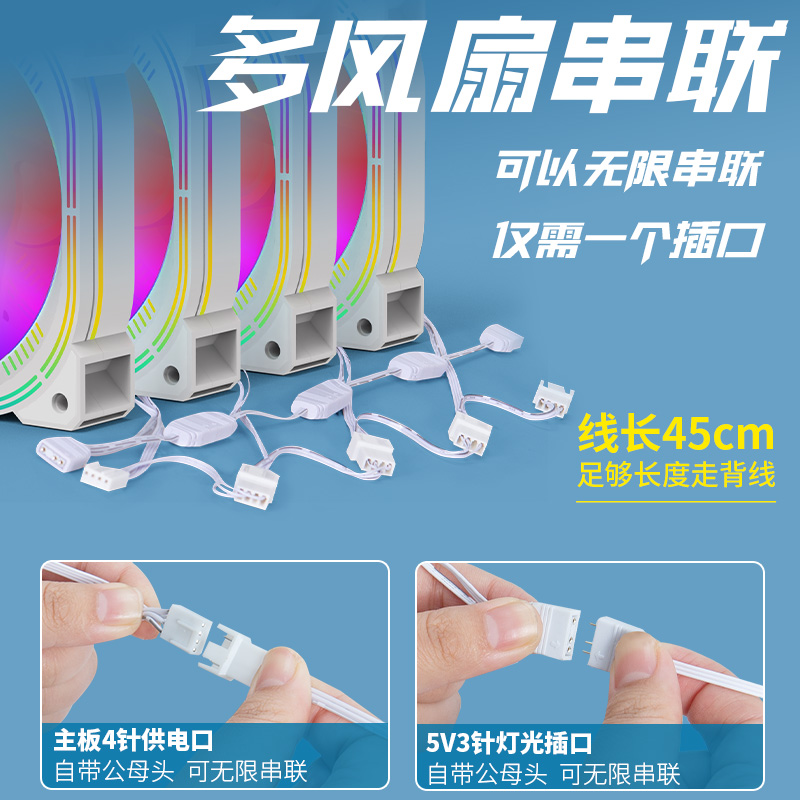 棱镜4pro风扇ARGB台式电脑机箱散热12CM发光超静音白色二四代串联