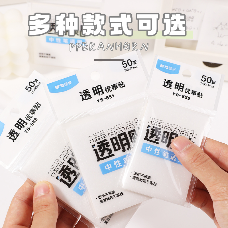 晨光便签透明便利贴学生用重点标记PET防水有粘性便签纸贴纸n次贴手帐标记索引贴可撕笔记备忘随写随贴高颜值