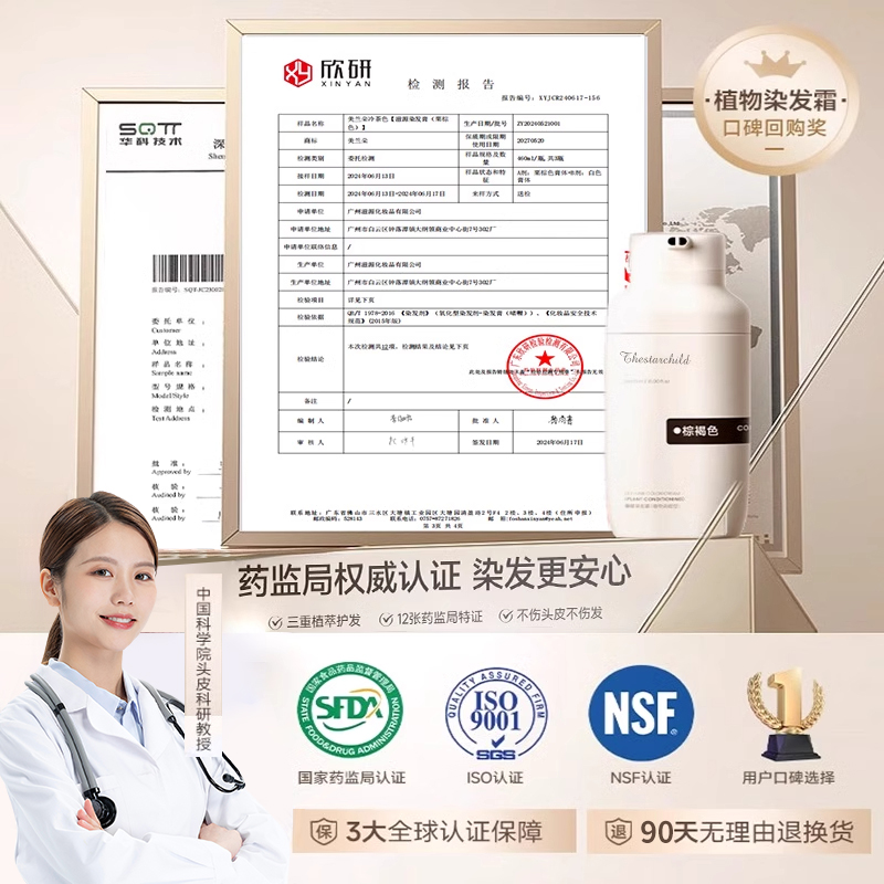 韩金靓正品染发剂黑茶色棕植物泡泡刺激无纯自己在家染发膏盖白女