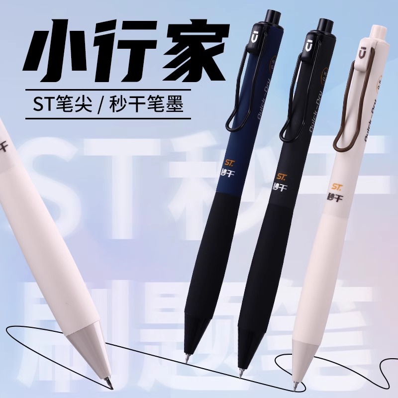 ST刷题笔高颜值按动中性笔圆珠笔黑色水笔小学生专用考试0.5速干碳素笔水性黑笔按压式做笔记签字笔非按斤卖