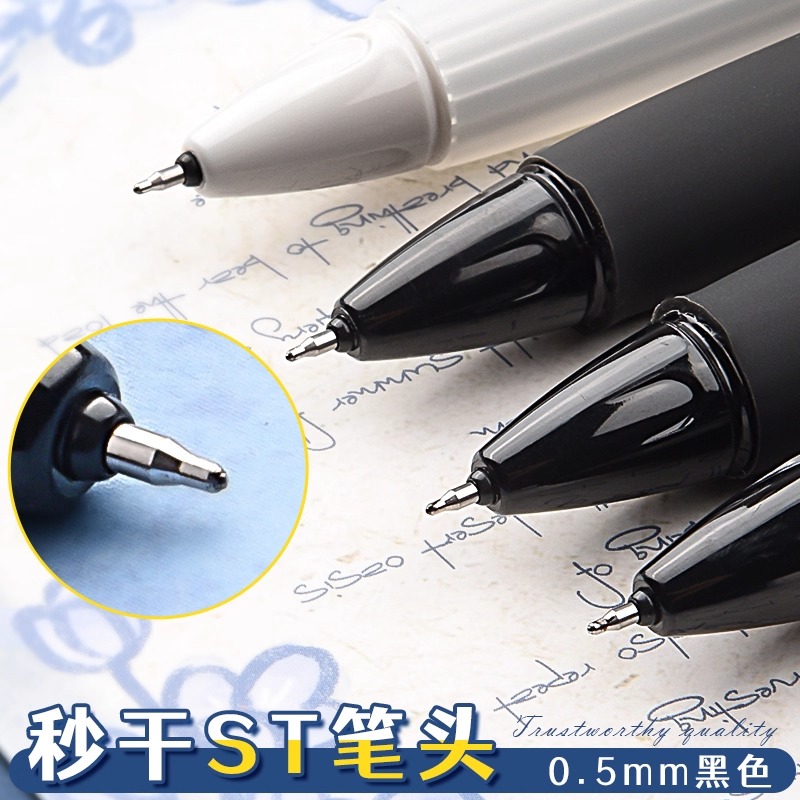 ST刷题笔高颜值按动中性笔圆珠笔黑色水笔小学生专用考试0.5速干碳素笔水性黑笔按压式做笔记签字笔非按斤卖