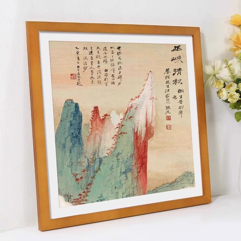 新中式木质画框装裱相框挂墙国画书法字画十字绣空框正方形50框架