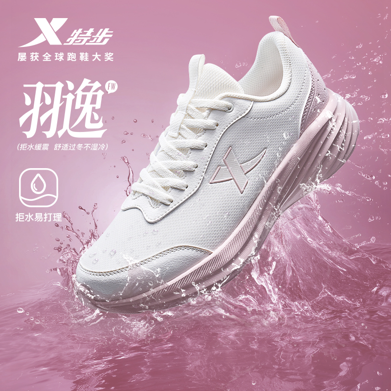特步羽逸FW丨跑步鞋女鞋秋冬新款运动鞋皮面防泼水减震跑鞋软底鞋