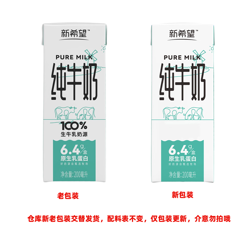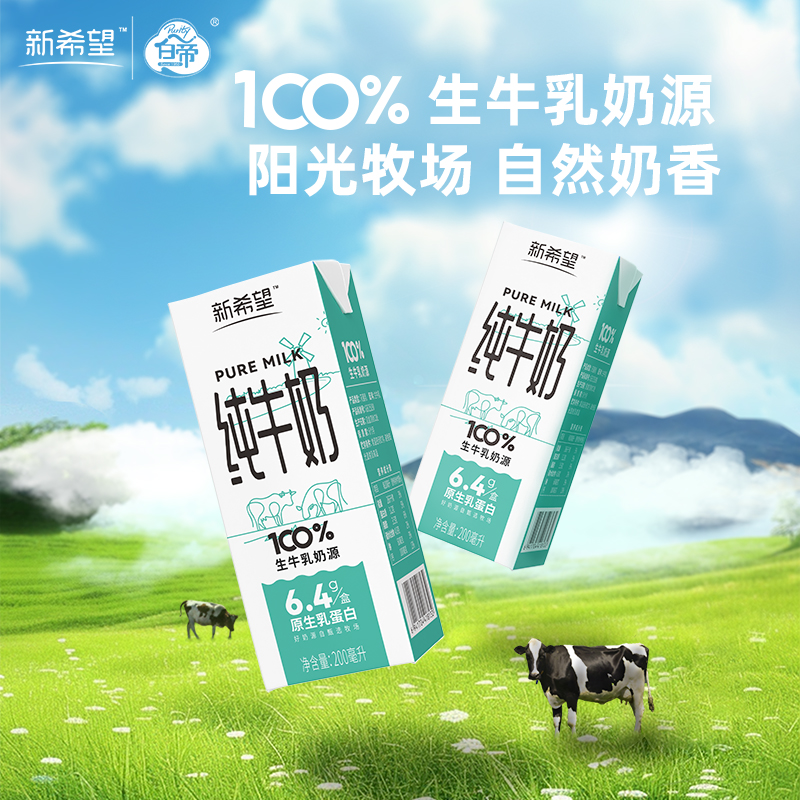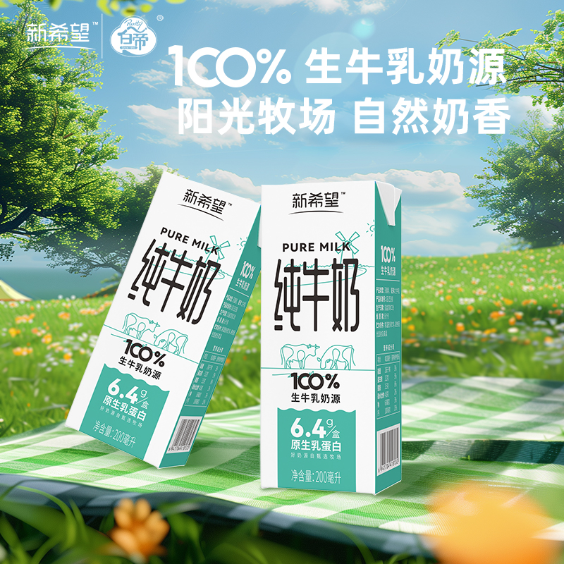 新希望白帝全脂纯牛奶200ml*12盒 营养早餐奶