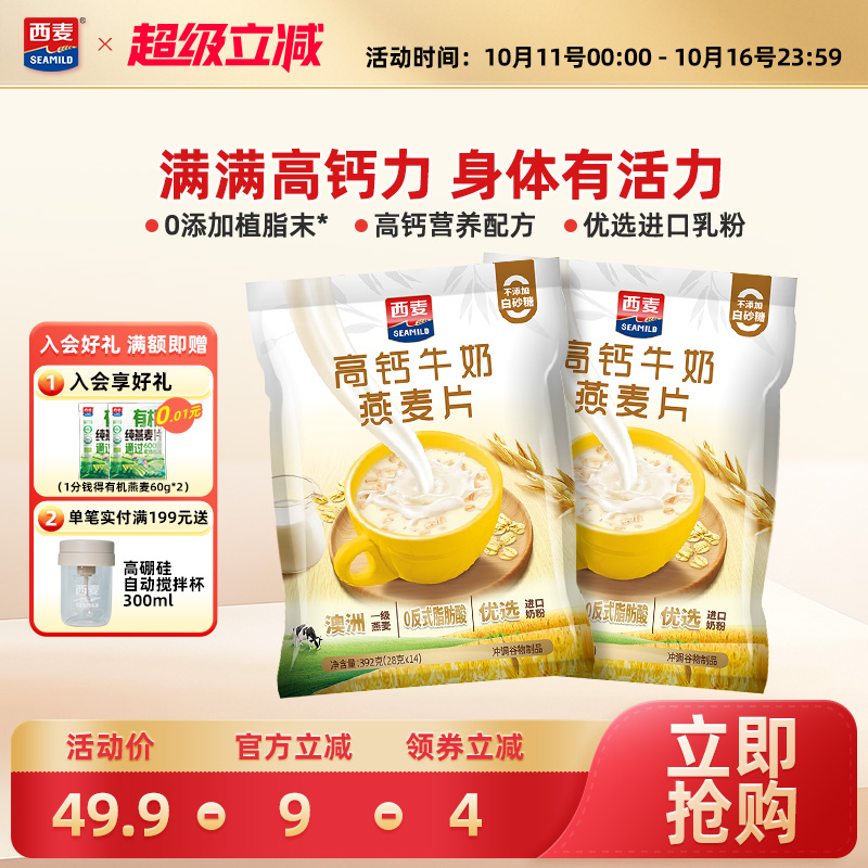 【新品】西麦高钙牛奶燕麦片392g*2袋独立装营养早餐食品冲饮速食