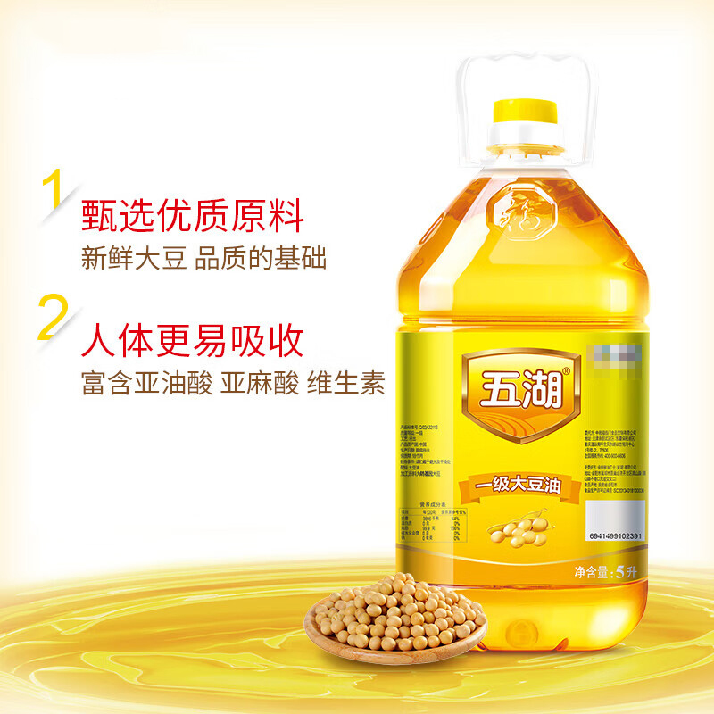 五湖一级大豆油5L*1/2/4桶整箱大豆油家用色拉油M食用
