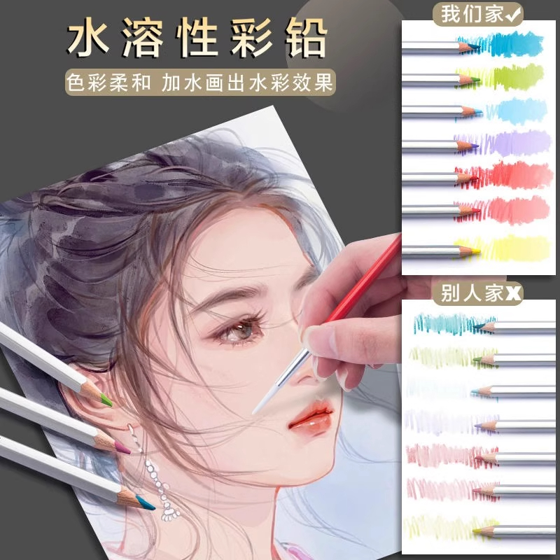 晨光彩铅可擦彩色铅笔水溶性24色美术生彩铅画笔彩笔儿童初学者小学生专用画画套装36色48色成人油性12色铅笔