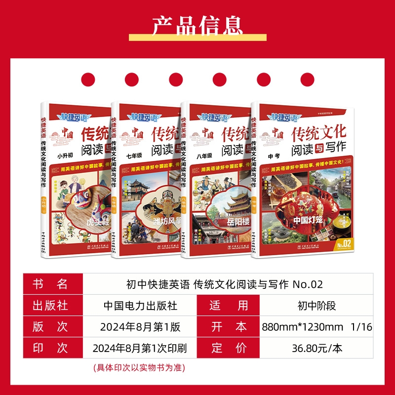 2024版快捷英语中国传统文化阅读与写作NO.02NO.01用英语讲好故事传播小升初七八年级中考常考话题配朗读音频时文历史初中填空