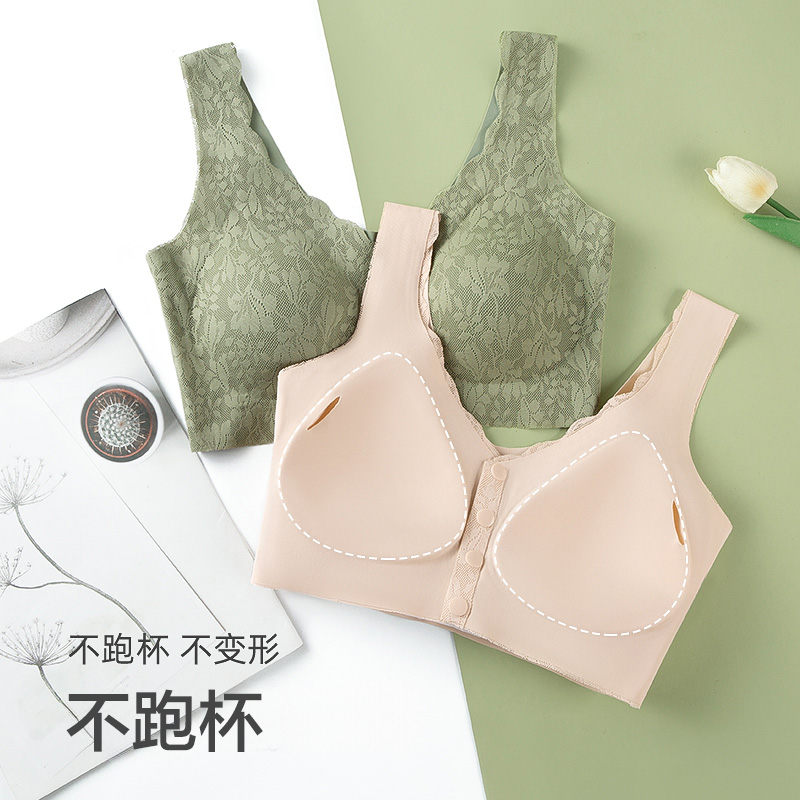妈妈内衣女前扣文胸无钢圈背心式胸罩中老年人妇女无痕大码夏薄款