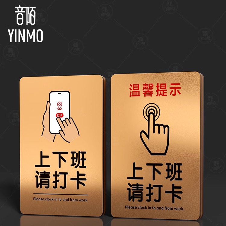 高档亚克力办公室上下班请打卡温馨提示牌定制古铜金工厂记得打卡门牌标识牌严格遵守公司管理制度告示牌门贴