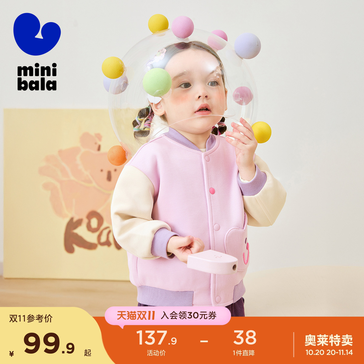迷你巴拉巴拉男童女童撞色棒球服夹克外套春秋宝宝婴儿户外上衣