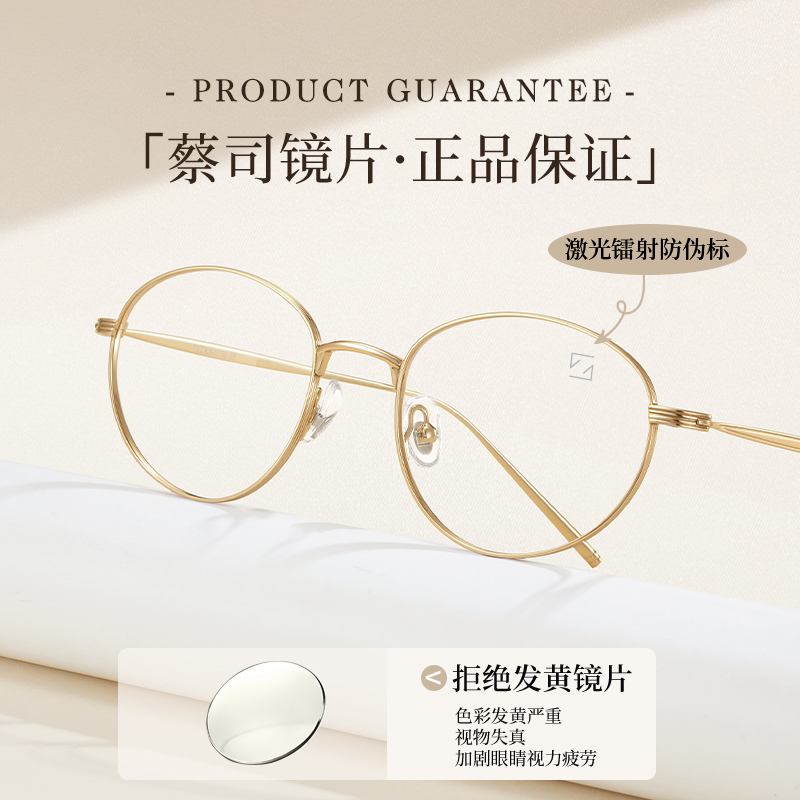 欧若风超轻纯钛金属细框近视眼镜女可配度数椭圆形金丝钛合金镜架