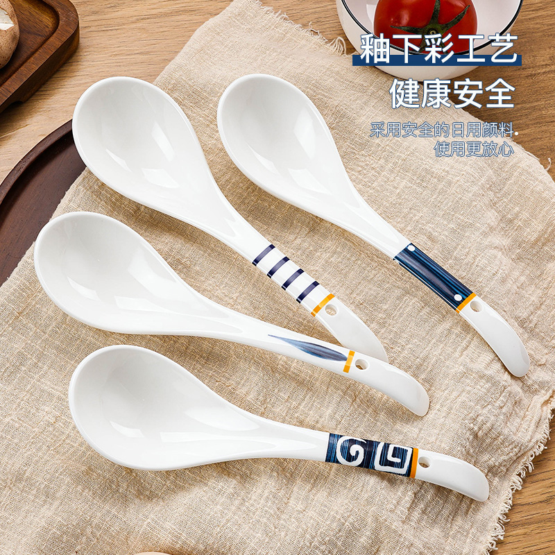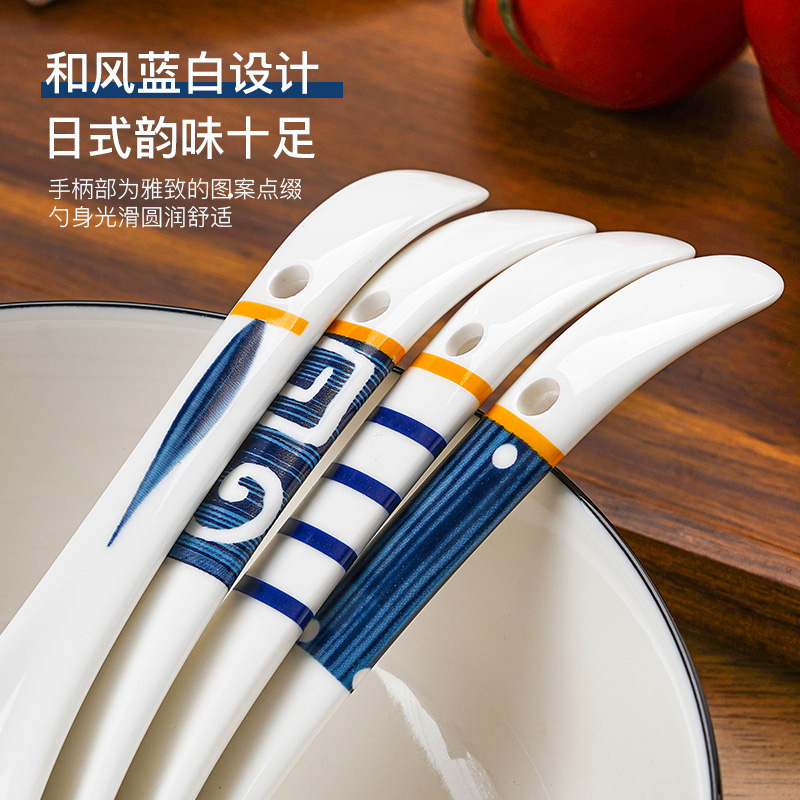 盛汤勺大号汤勺家用陶瓷餐具套装饭勺大勺子长柄日式舀粥调羹汤匙