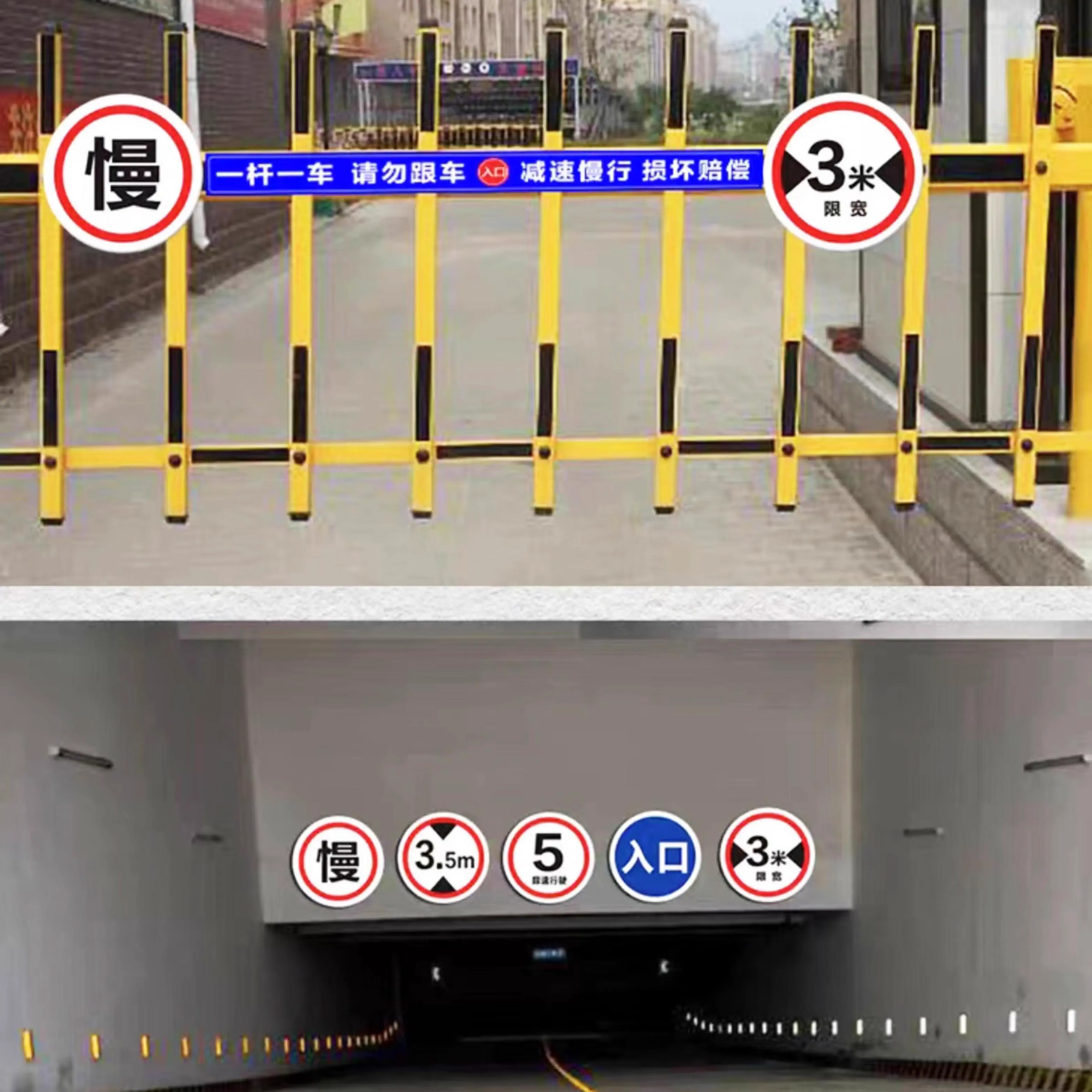 停车场出口入口指示牌指引牌道闸警示牌进一车一杆请勿跟车提示牌起落杆禁止通行慢行交通出口标识牌圆形铝板