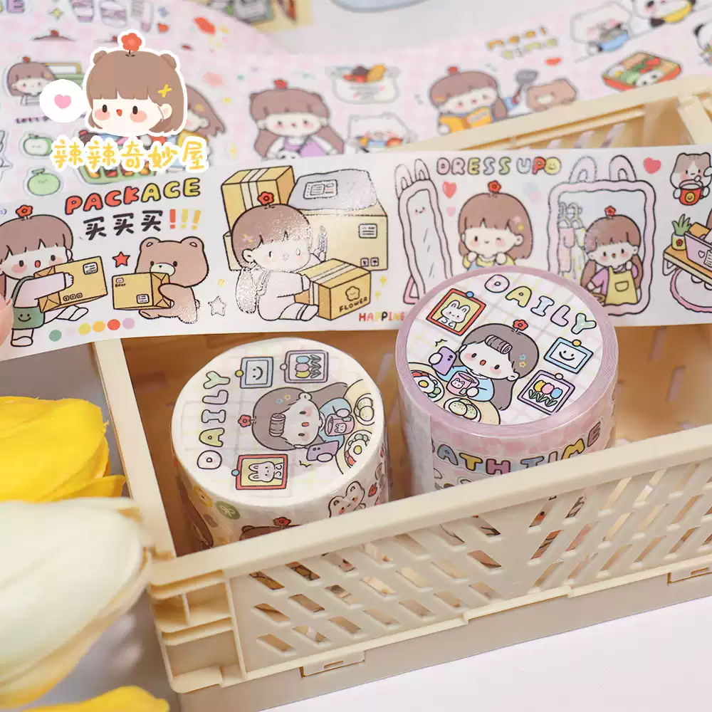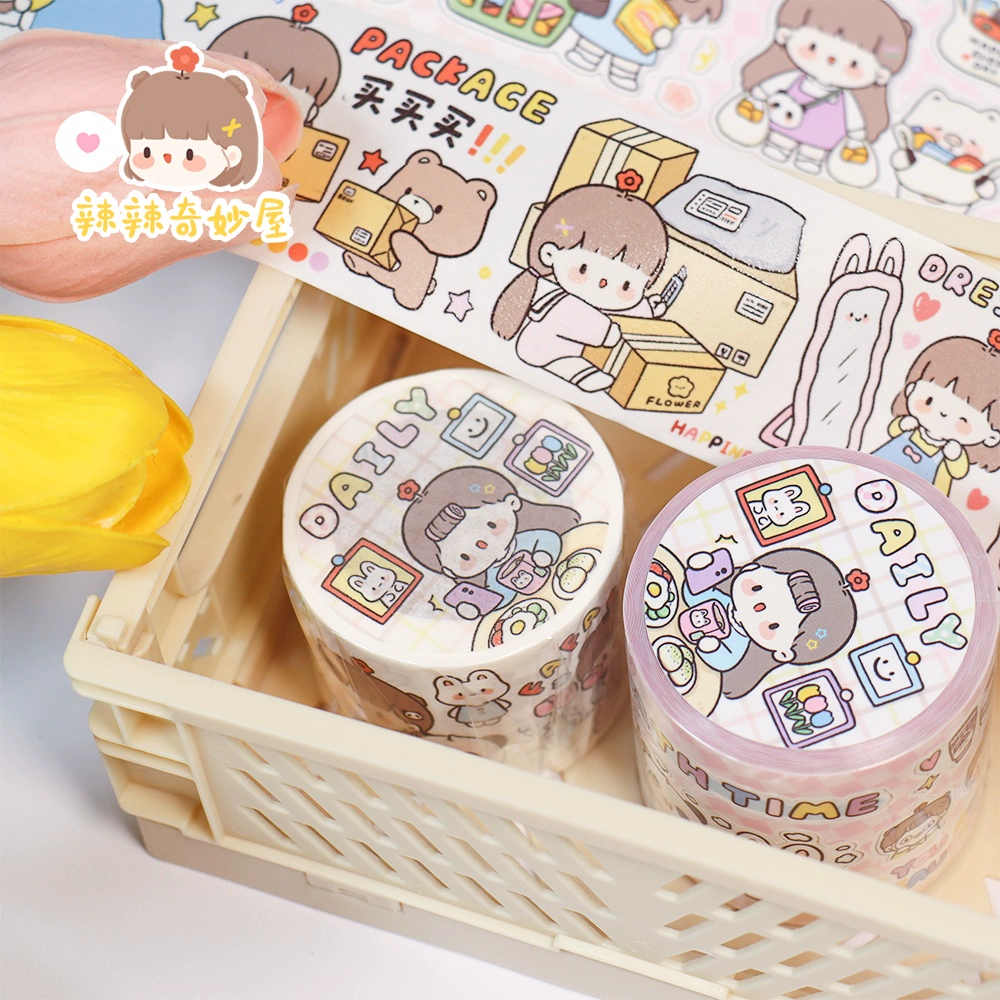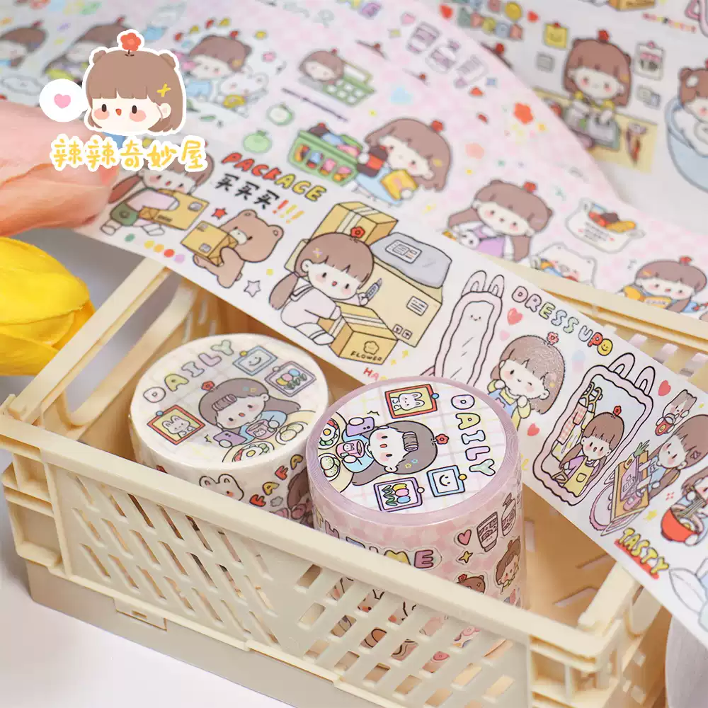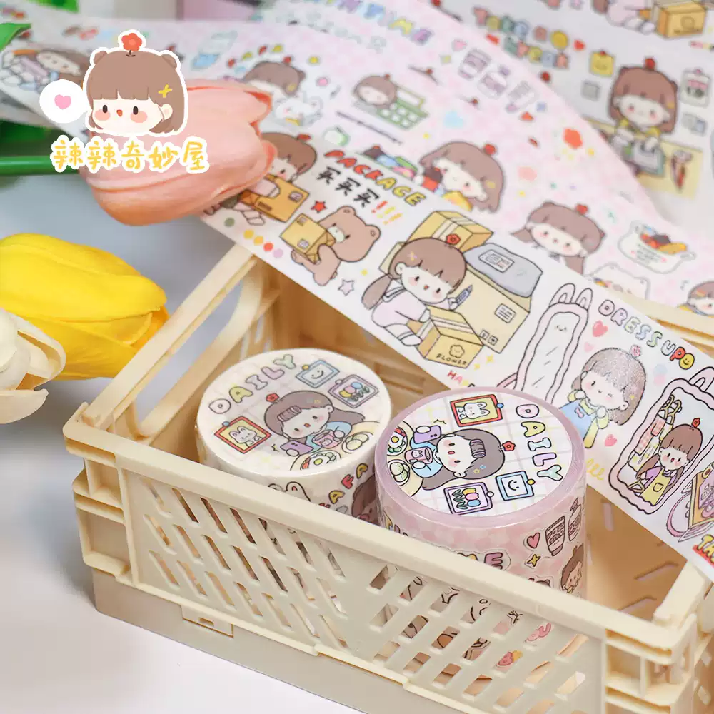 巴辣辣【周末时光】日常生活可爱女孩手账和纸胶带手帐模切贴纸卷