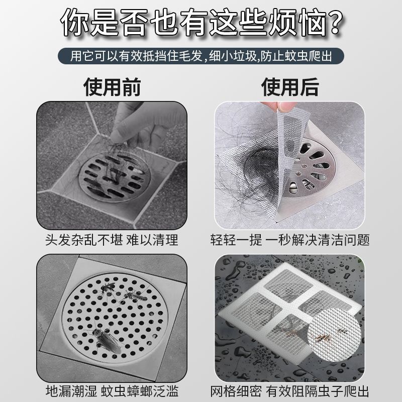地漏贴浴室头发毛发拦发网卫生间下水道过滤器防堵塞防虫防臭水槽