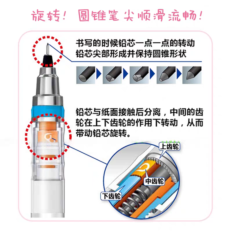 新款日本进口uni三菱M5-1009GG不断芯自动铅笔0.5绘画专用小学生写不断kurutoga旋转二倍文具大赏限量版