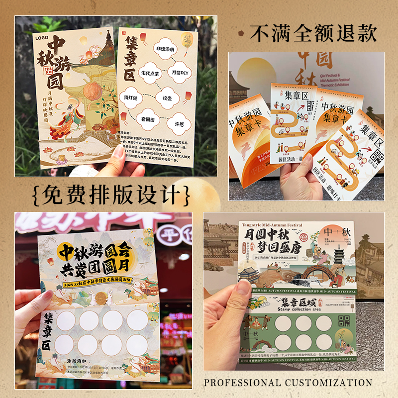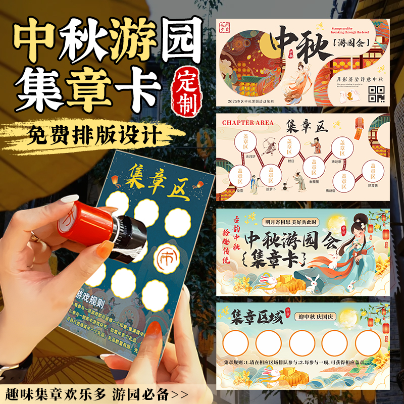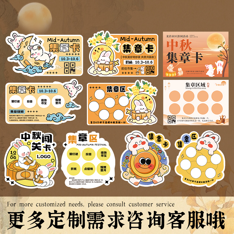 2025中秋闯关卡定制节日游戏任务通关盖印章卡片公司活动奖励积赞分礼品兑换卡入场券幼儿园游园会集章卡定做