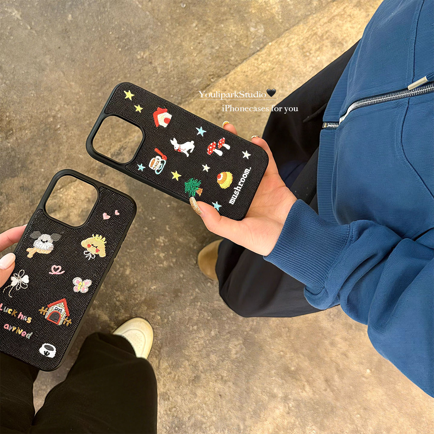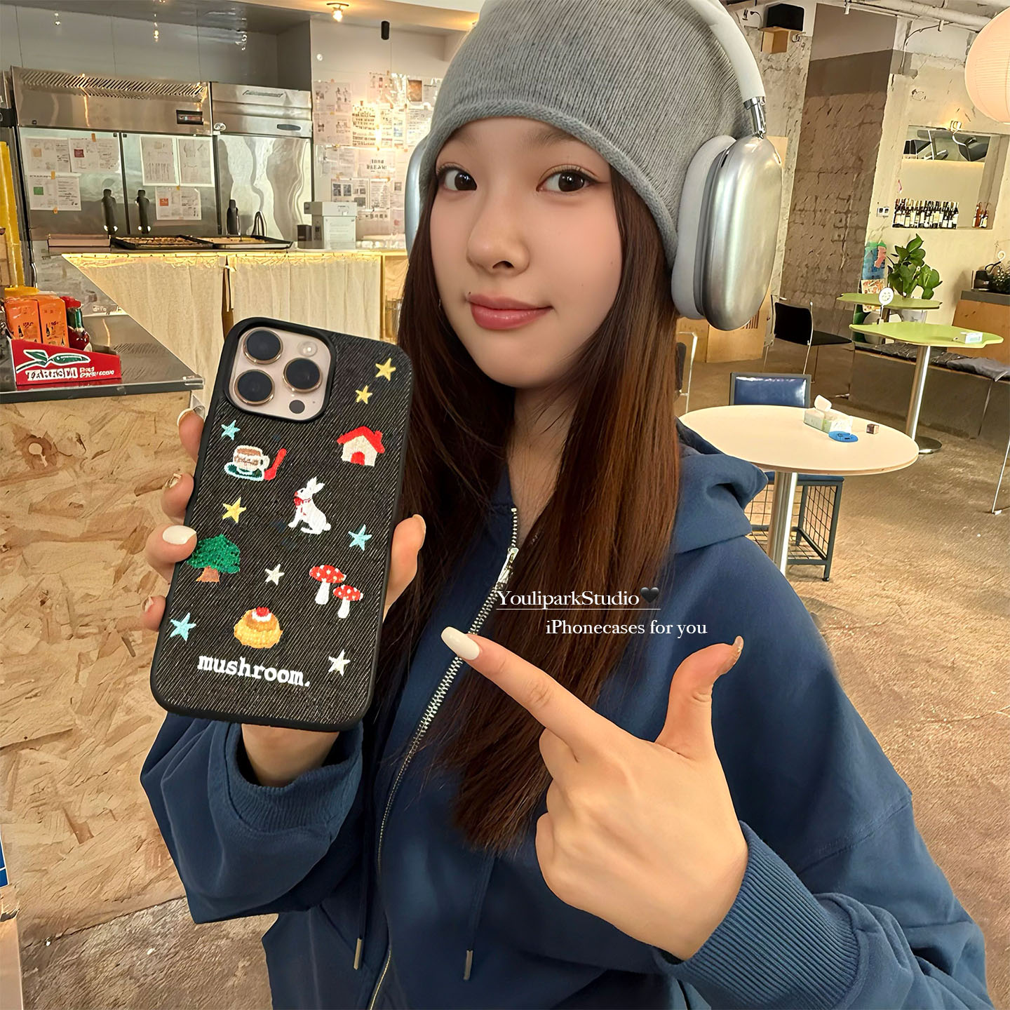 由里公园ins韩系秋冬时髦牛仔可爱刺绣小狗17适用17pro苹果17ProMax手机壳iPhone16全包14新款16Promax保护套