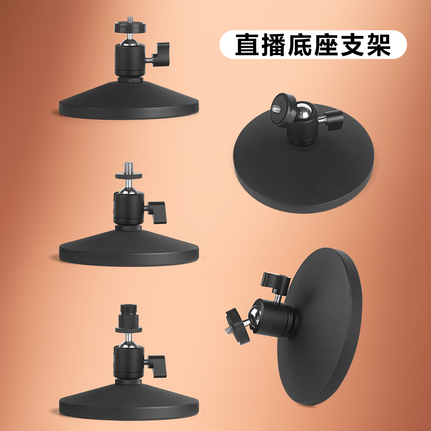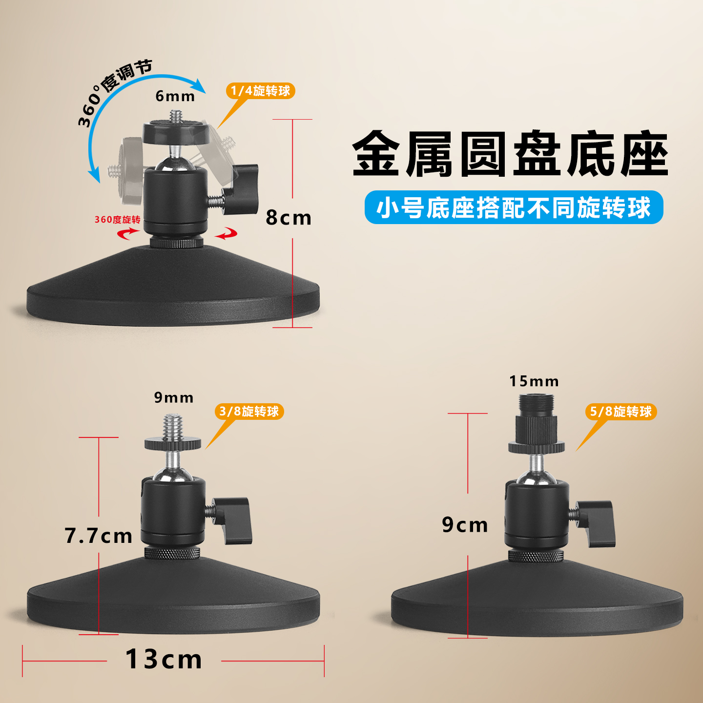 手机直播支架桌面1/4云台360度旋转加重金属圆盘底座矮款短杆防倾倒配件设备摄像头监控投影仪通用3/8话筒架
