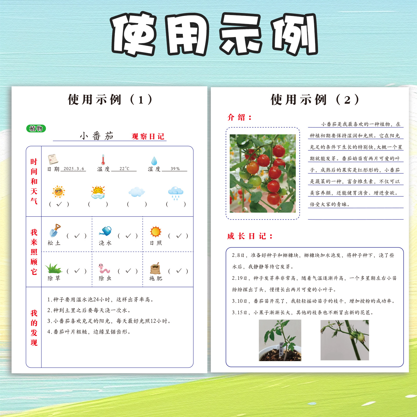 小学生动物植物观察记录日记本自然科学动植物生长规律习性观察记录本黑白版彩色版培养孩子自主动手观察力