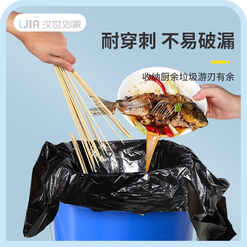 汉世刘家大垃圾袋大号加厚黑色家用手提式厨余袋商用厨房大塑料袋