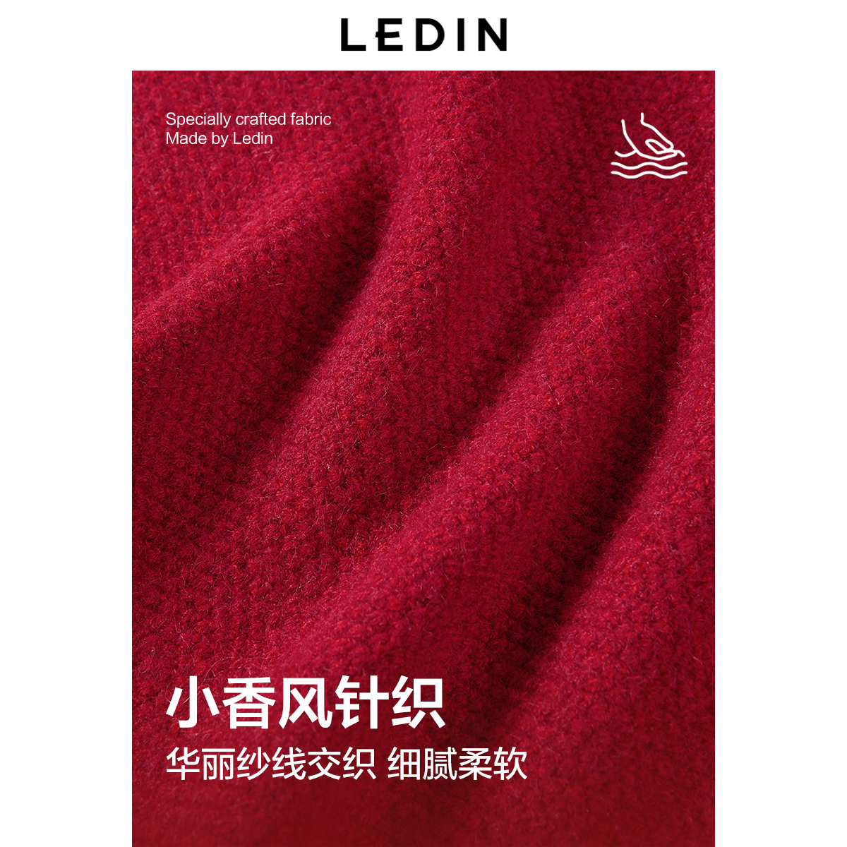 乐町小香风针织开衫25春季新款精致千金少女感本命年红色毛衣外套