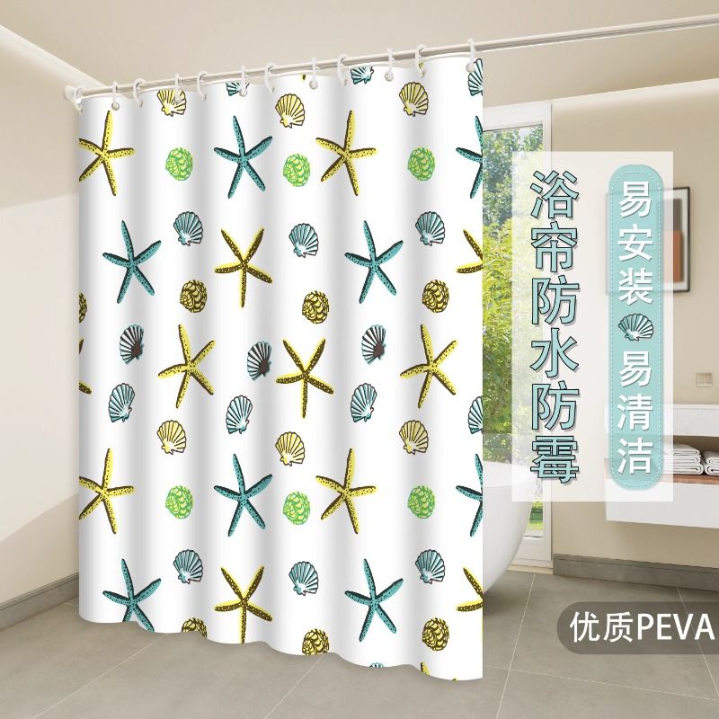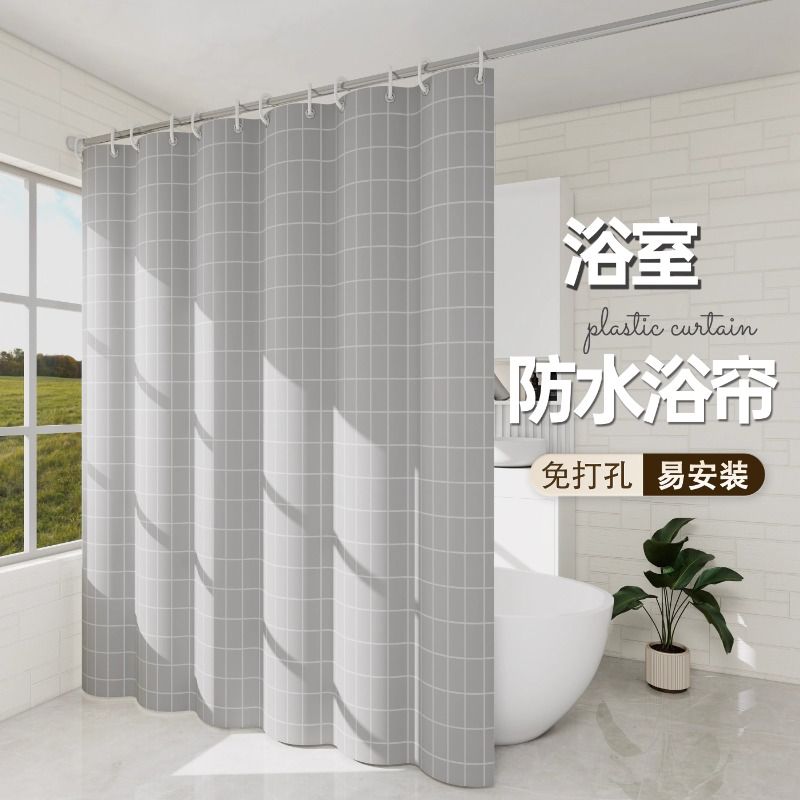 卫生间浴帘塑料防水防霉套装帘子免打孔隔断门帘挂帘浴室洗澡窗帘
