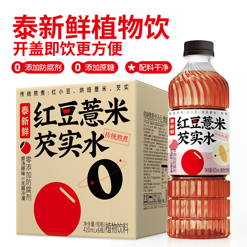 泰新鲜红豆薏米芡实水祛湿养生传统熬煮0蔗糖植物饮料420ml*6瓶