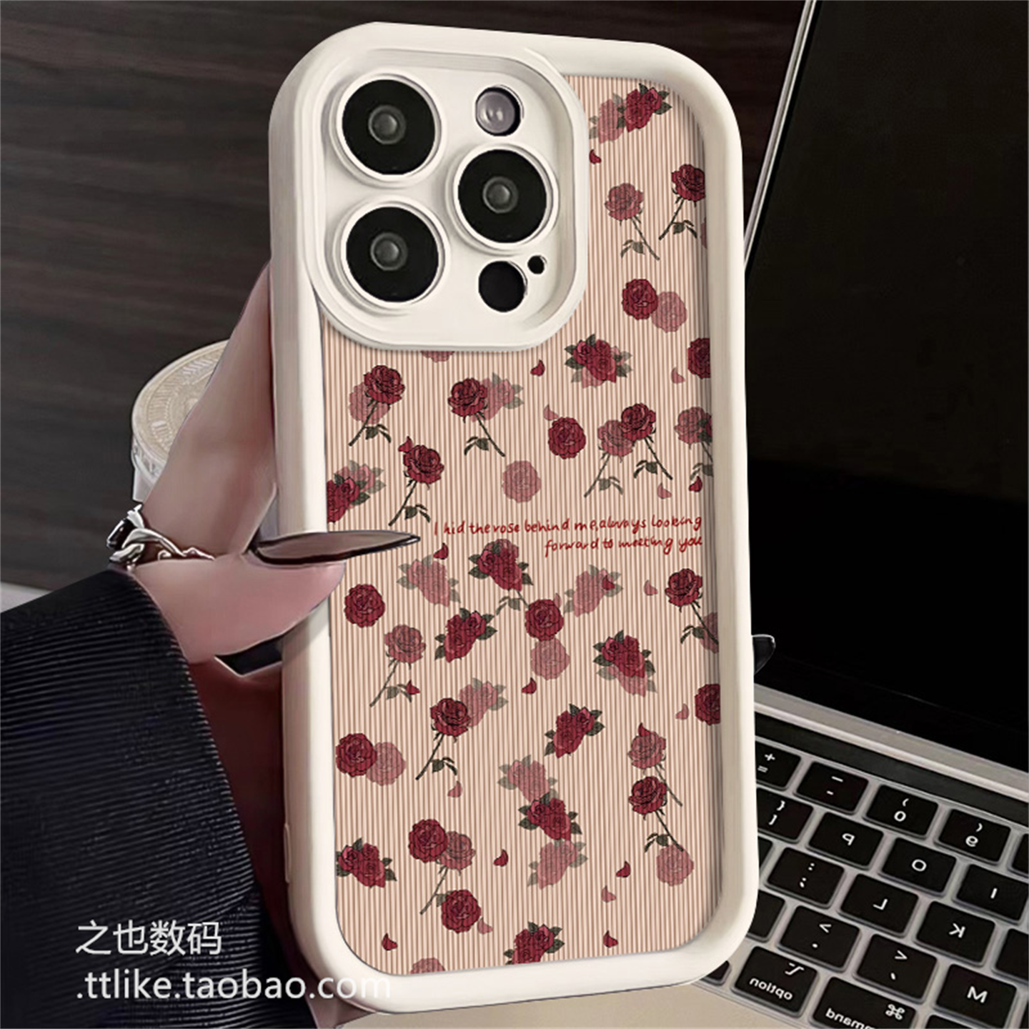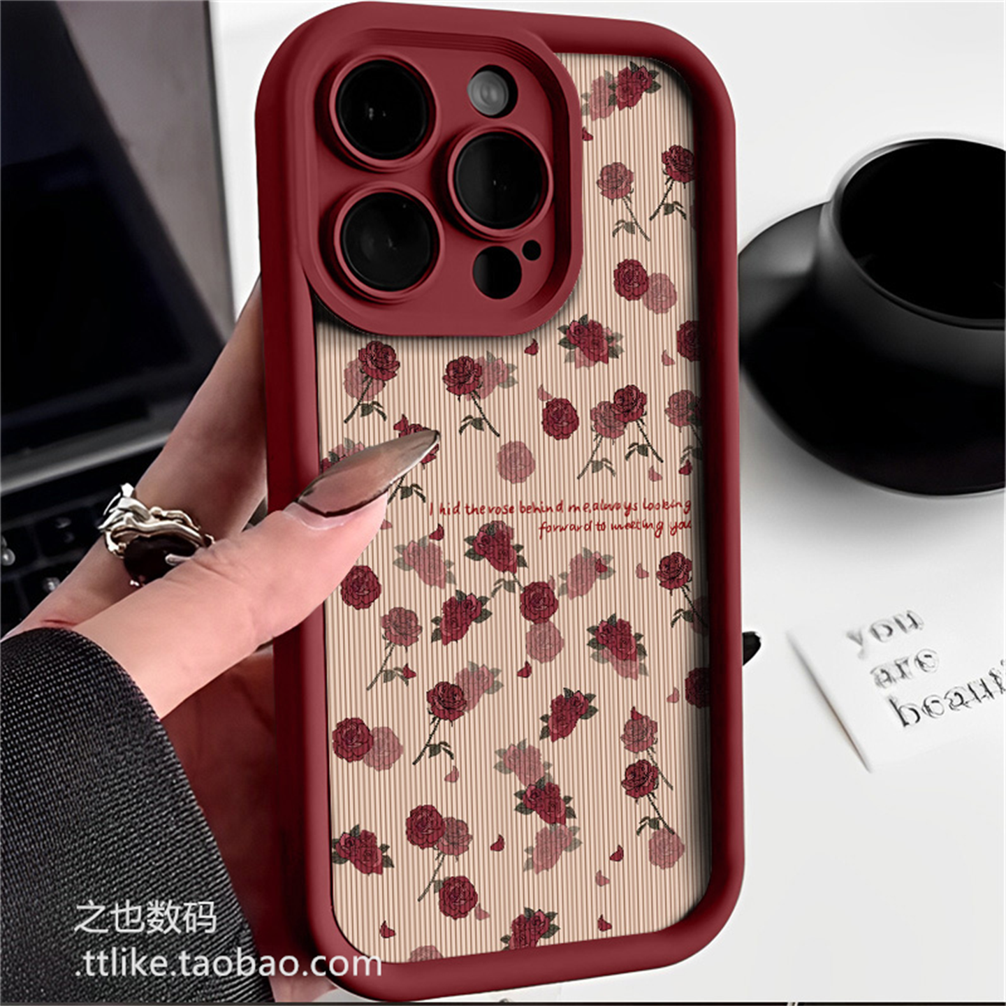 咖色玫瑰花适用vivoS30promini手机壳S20防摔S18E黑白S17t直边S16硅胶S15时尚S12厚S10精孔S9E全包S7t简约S19
