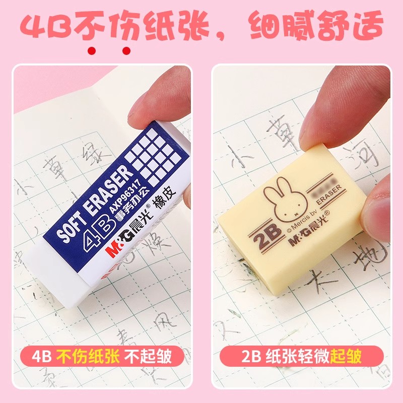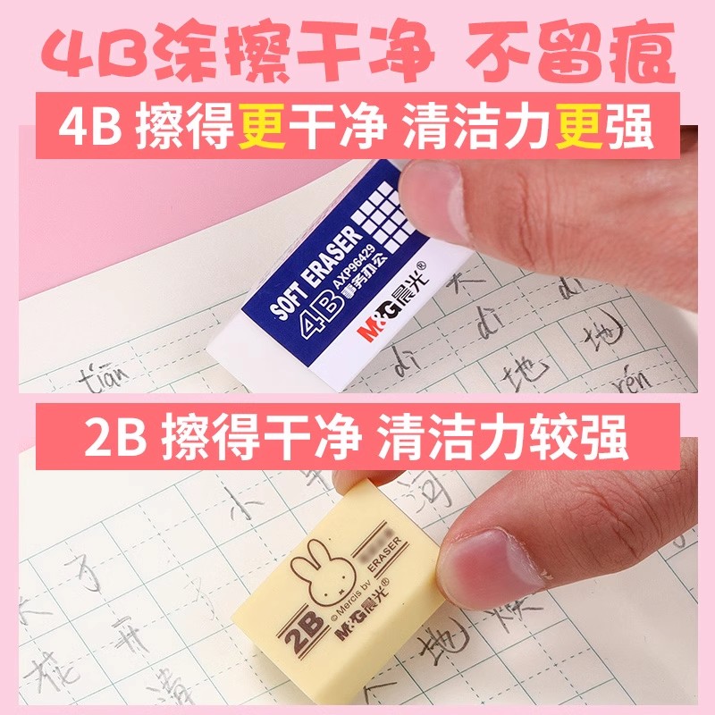 晨光4b美术橡皮擦无屑不留痕小学生像皮檫的干净擦字成线学生专用铅笔绘图考试象皮无痕不伤纸儿童素描