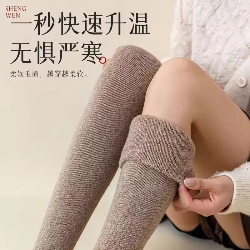 过膝袜子女高筒袜秋冬季加绒加厚保暖大腿纯色冬天半截长筒袜膝盖