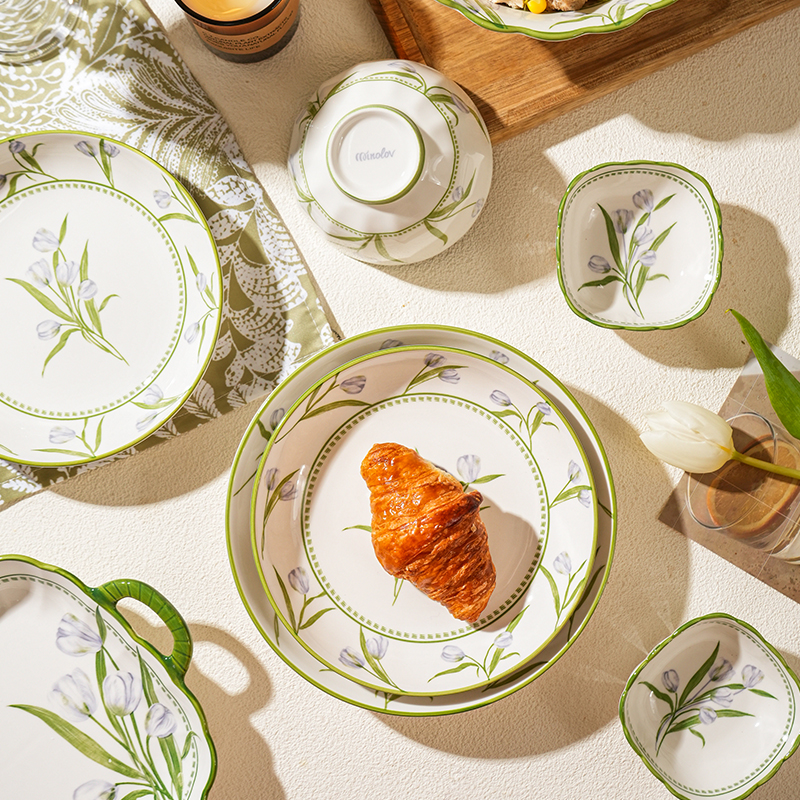 法式奶油风陶瓷碗餐具碗盘套装吃饭碗高颜值轻奢汤碗家用2025新款