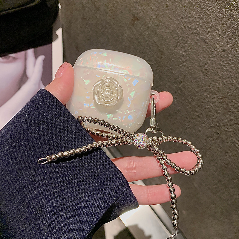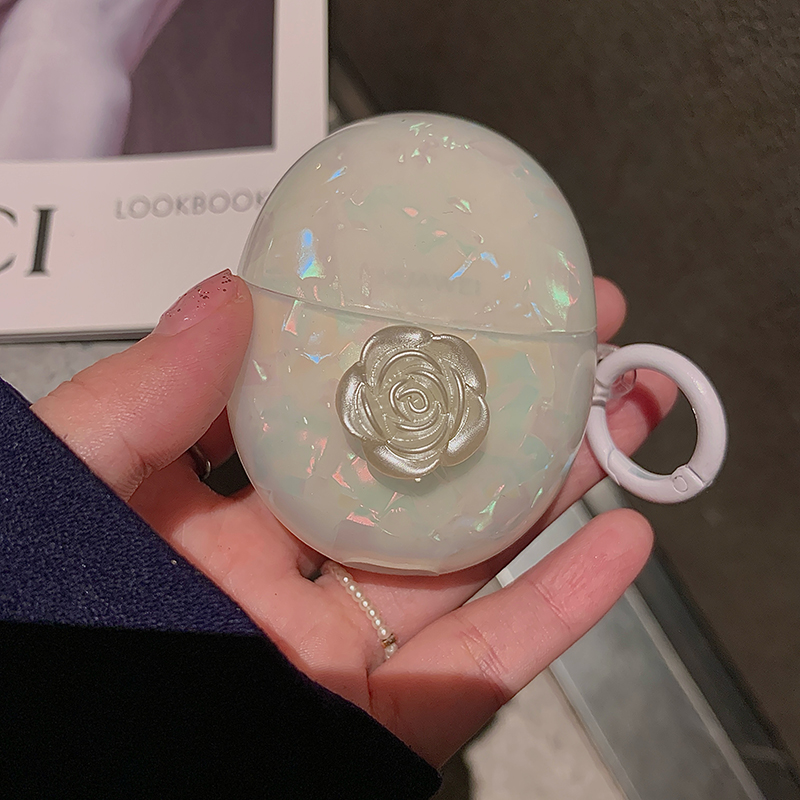 freebuds6贝壳纹立体花朵SE3适用华为freeclip保护套freebuds5i/6i耳机套freebuds4/4e银色珍珠挂件5代pro4