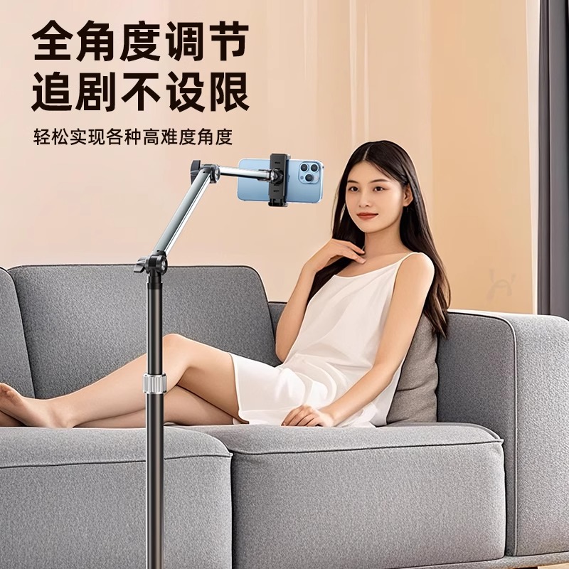 手机支架2025新款简易桌面落地背贴床上躺着懒人床头多功能金属可升降旋转折叠多机位拍摄vlog拍视频直播专用