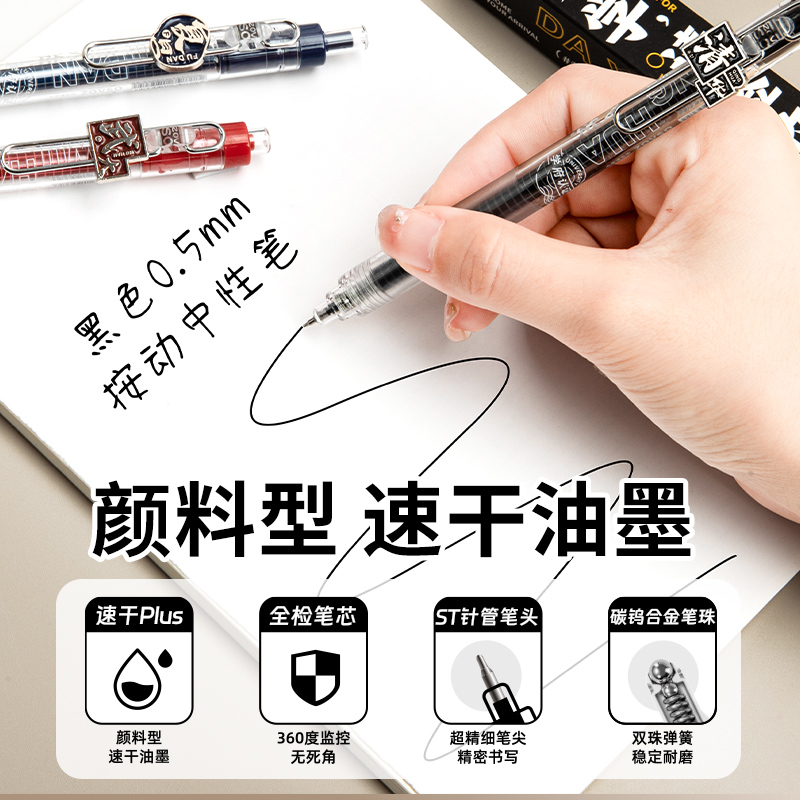 ST刷题笔高颜值按动中性笔圆珠笔黑色水笔小学生专用考试0.5速干碳素笔水性黑笔按压式做笔记签字笔非按斤卖