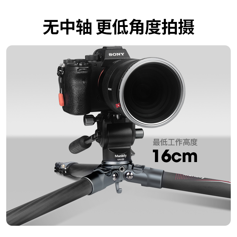 曼比利Manbily板扣式碳纤维无中轴三脚架液压云台相机支架户外便携单反摄像机低角度旅游摄影拍照三角架PH-25