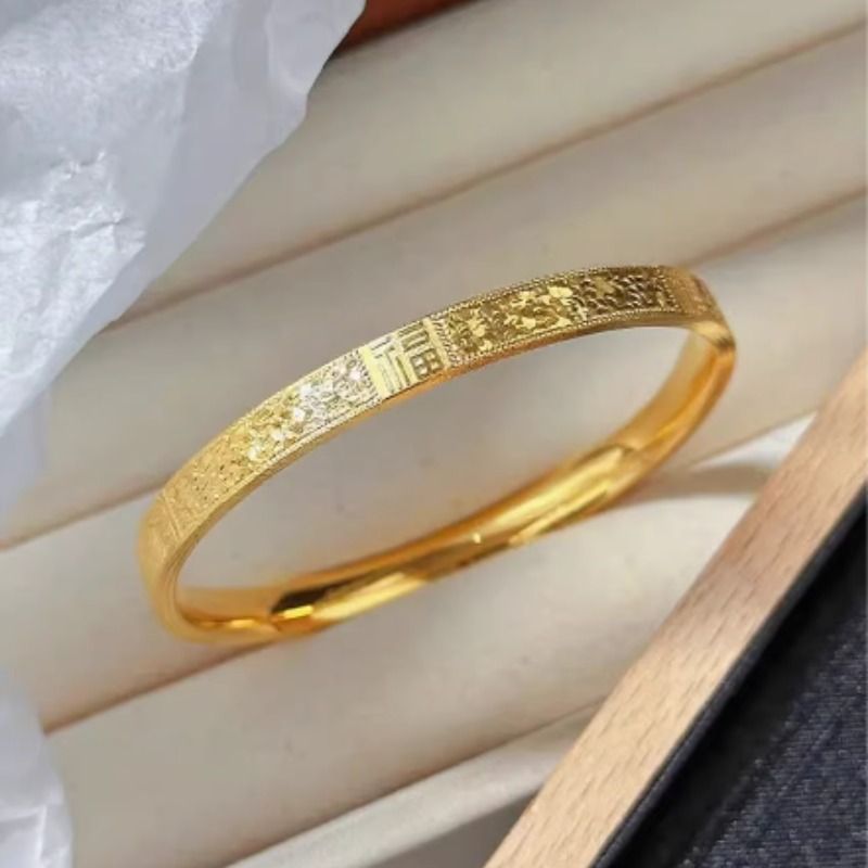 送女友沙金福字碎碎冰轻奢转运镯子素圈手环黄金色礼物首饰