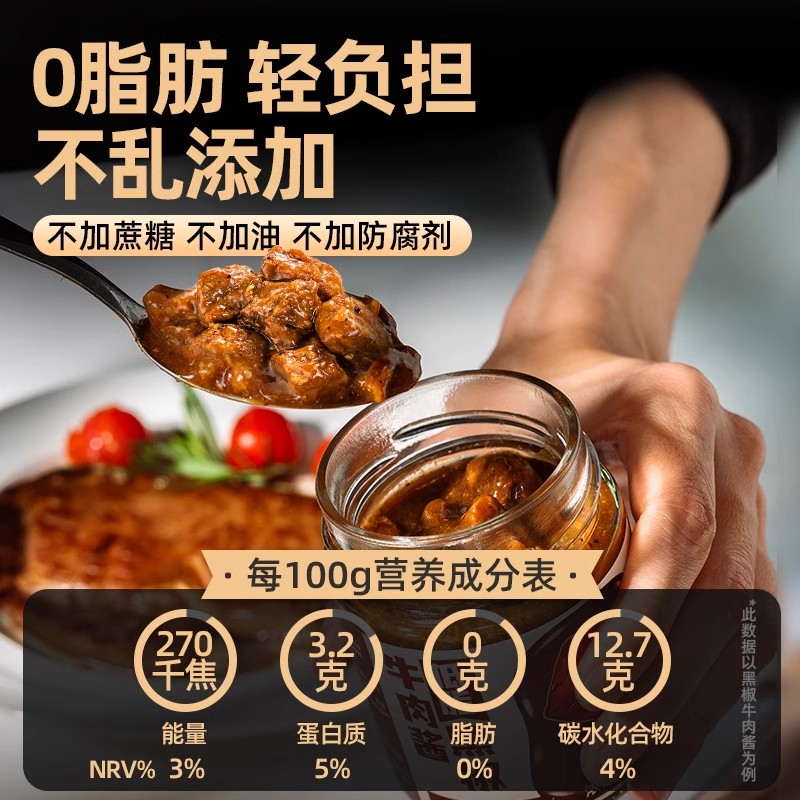 牛肉酱减0低脂肪卡酱料拌饭酱拌面酱鲜辣椒酱下饭推番茄香辣不辣