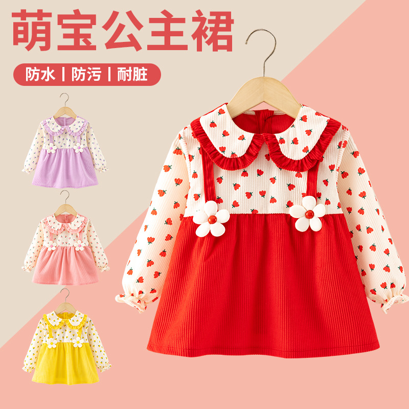 婧麒宝宝罩衣春秋防水防脏吃饭围兜秋冬外穿洋气儿童围裙反穿护衣