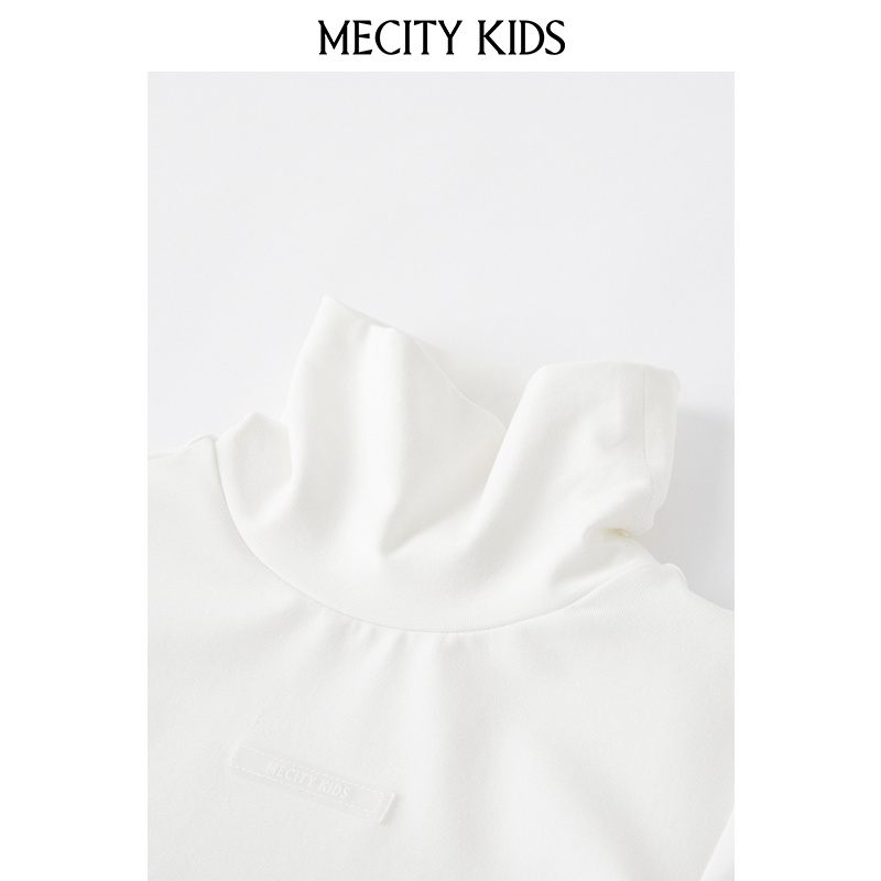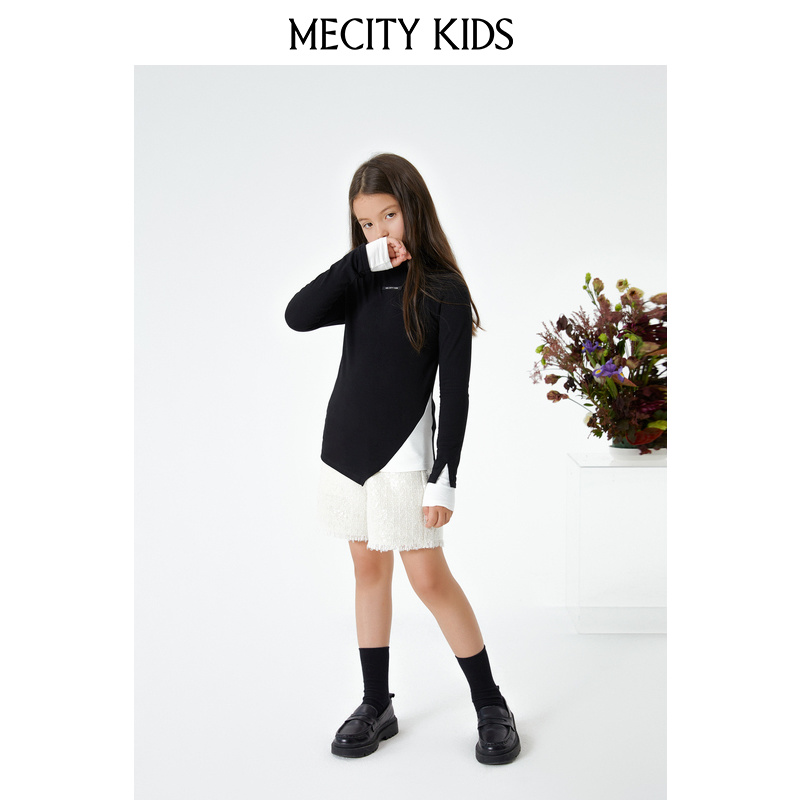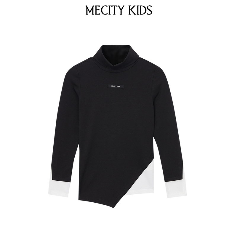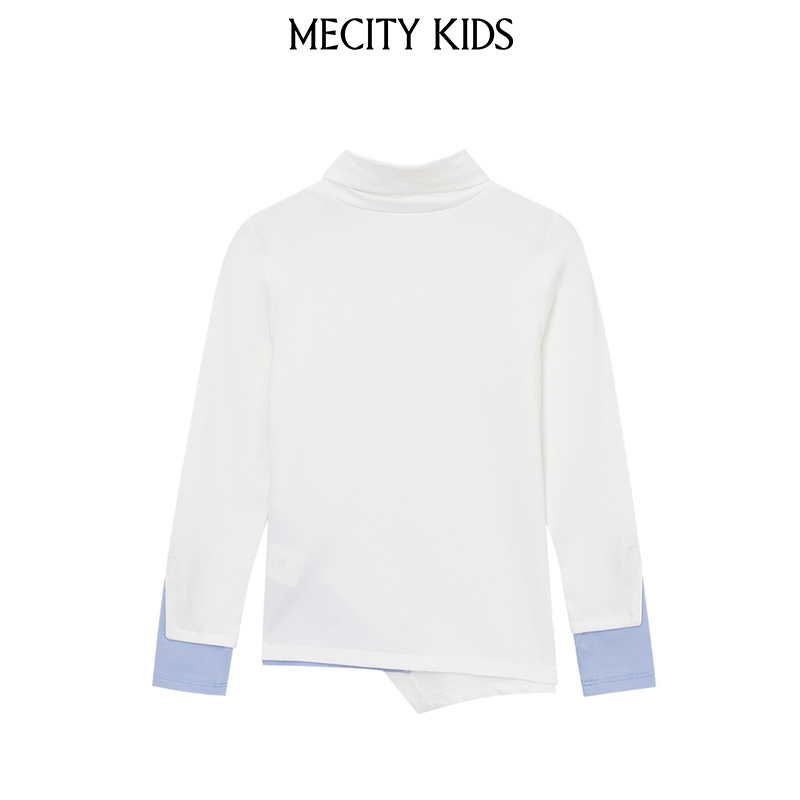米喜迪童装初春女童半高领下摆不对称撞色内搭百搭长袖T恤上衣女