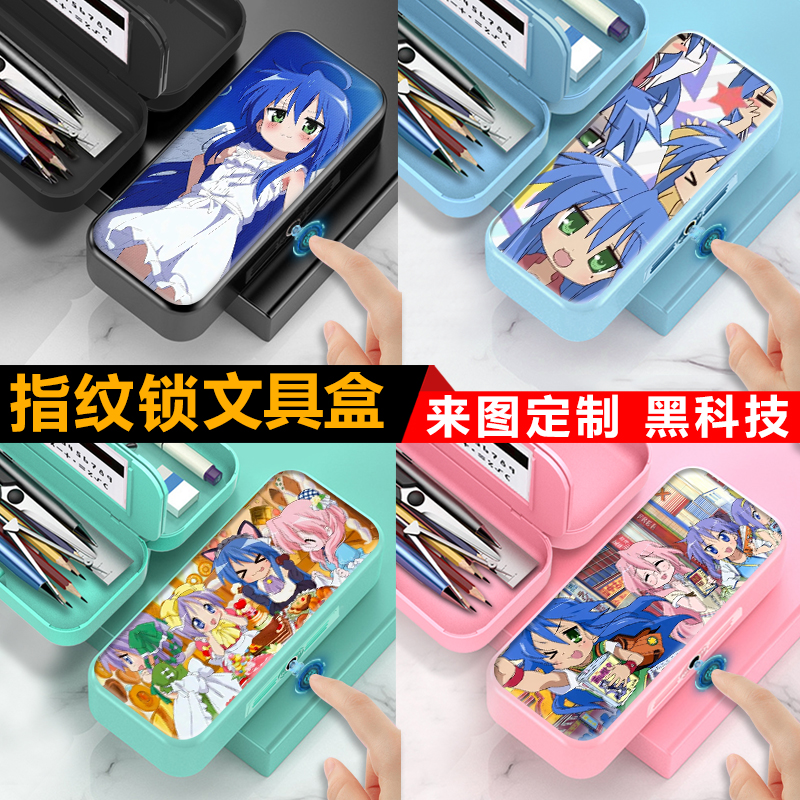 幸运星泉此方高颜值霸气多功能指纹文具盒大容量密码锁笔盒男女款